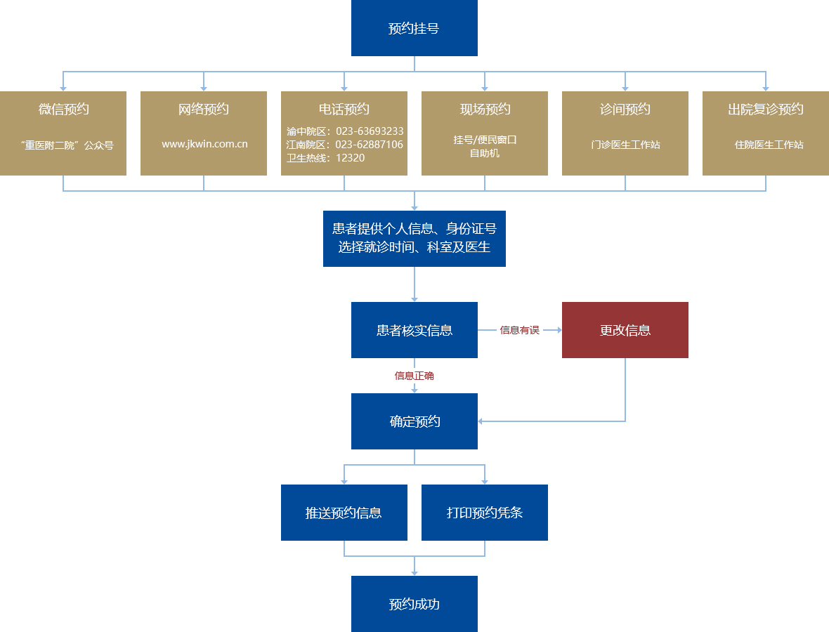 2、电话预约:渝中院区023-63693233;江南院区 023-62887106