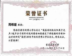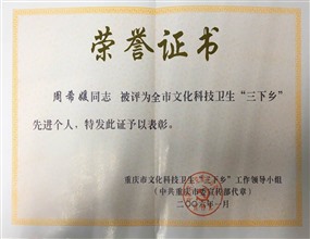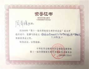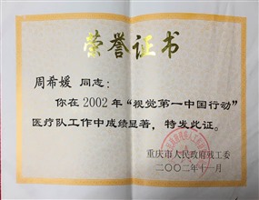 2020年周希瑗教授荣膺“中华医学会眼科学分会西部创业贡献专家”
