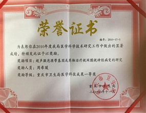 (3) 科室是重庆市防盲治盲技术指导中心、重庆市老年眼病防治中心、重庆市近视防控小组组长单位、重庆市眼科联盟主席单位,重庆市妇幼卫生学会眼科学与眼保健专业委员会主委单位,担负着重庆市卫健委、重庆市残疾人联合会防盲治盲任务;是国家教委博士、硕士学位授予单位,承担了多项国家及省部级科研课题,并有多项课题获奖。