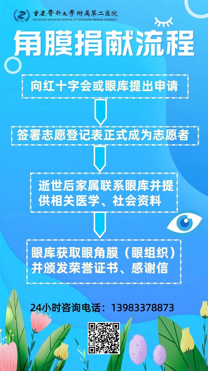 眼库于2024年7月经重庆市卫生健康委员会批准成立,是一家非营利性机构,专门负责角膜移植手术所需的眼组织获取与分配,其主要职能包括角膜捐献的接收、保存、监测评估、科学研究、教学等。作为重庆市防盲致盲中心,我院在角膜疾病的诊断、治疗和手术方面具有广泛的专业知识和技术,已成功开展角膜移植手术,进一步为重庆市以及周边地区防盲、治盲工作提供支持,搭建起宣传倡导、角膜捐献、角膜移植手术、临床研究及技术创新一体化光明平台,帮助因角膜病致盲或致残的患重拾光明!
