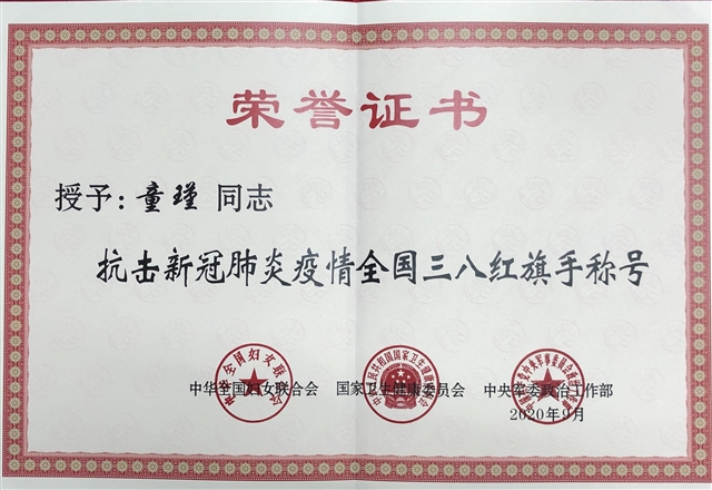童瑾-新冠肺炎疫情防控“重庆市巾帼建功标兵”