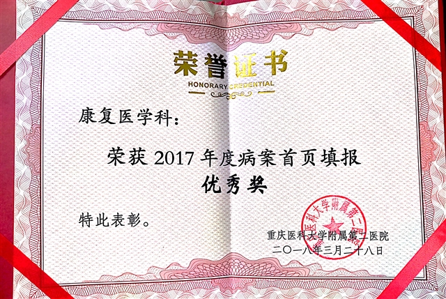 院发-2017年病案首页填报优秀奖
