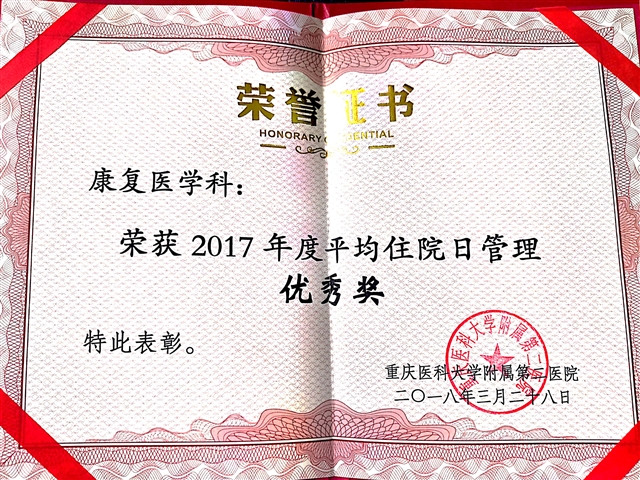 院发-2017年平均住院日管理优秀奖