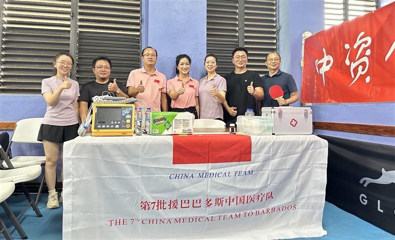 2025年10月19日(当地时间),巴巴多斯中资企业乒乓球联谊赛在首都布里奇顿举行。第7批援巴巴多斯中国医疗队全程为赛事提供医疗保障,并派出队员参与比赛,展现出中国援外医疗团队的专业素养与协作精神。