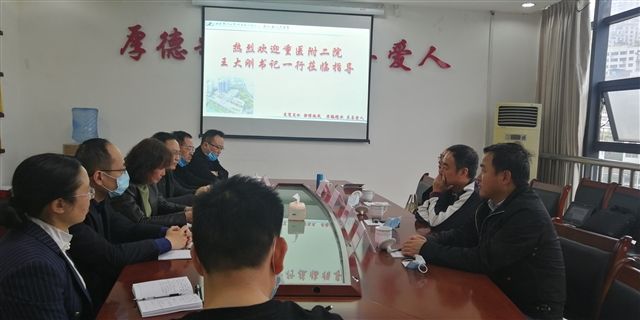 2020年4月2日,重庆医科大学附属大学城医院党委书记唐玲、院长周善璧带领该院领导班子成员及机关后勤职能科室全体干部一行29人来我院江南院