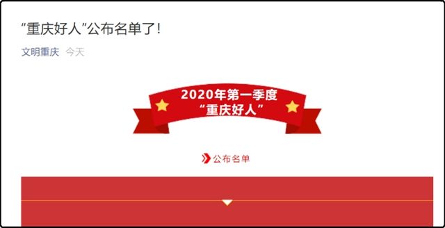 日前,重庆市文明委通报了2020年第一季度“”重庆好人榜”和“抗疫英雄 重庆好人特别奖”上榜名单,30位来自全市各行各业的身边好人入选。