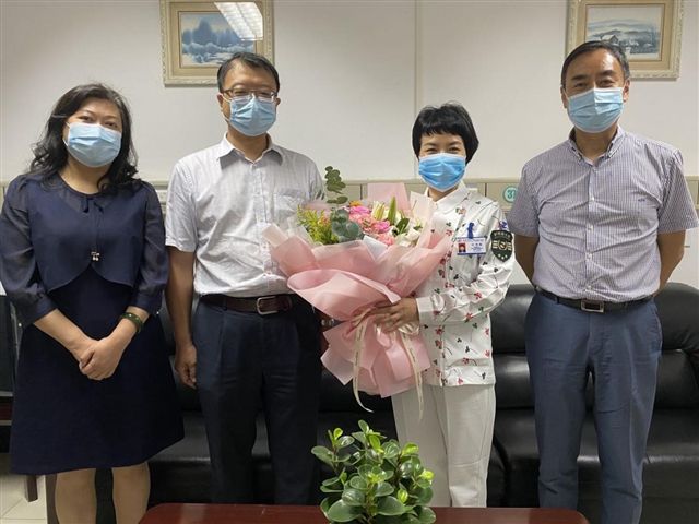 5 12国际护士节来临之际,5月9日上午10点,重庆市卫健委医政医管处处长张维斌和王迎春老师一行来我院渝中院区看望慰问重庆市第十七批援湖