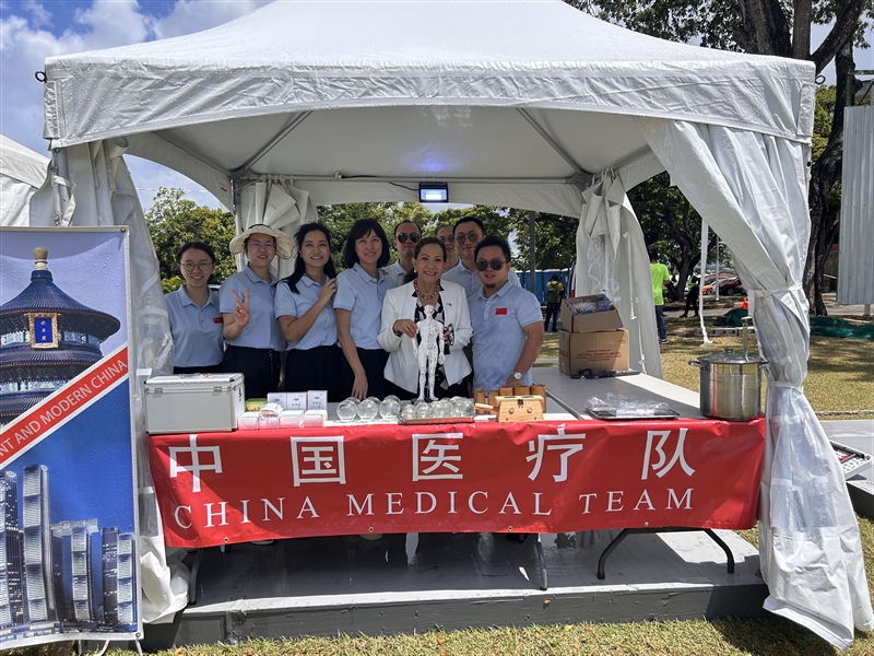 近日,第7批援巴巴多斯中国医疗队受邀参加加勒比地区重要文化盛会——加勒比艺术节(CARIFESTA),在巴巴多斯社区学院设立展区,为艺术节提供医疗保障的同时,精彩展示了历史悠久的中国传统医学文化,获得各国艺术家和观众的热烈欢迎。