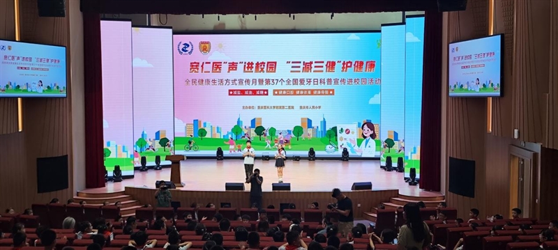“边玩边学,还能拿奖品!”孩子们举着盖满印章的游园卡,兴奋地兑换笔袋、马克笔,笑容如阳光般灿烂。2025年9月17日,在19个“全民健康生活方式宣传月”,又逢第37个“全国爱牙日”,重庆医科大学附属第二医院“宽仁医声”科普团队走进重庆市人民小学,为400余名四年级师生带来了一场别开生面的科普盛宴。中央广播电视总台重庆总站办公室主任、编委王磊,重庆市人民小学校党委书记、集团总校长杨浪浪,党委副书记、