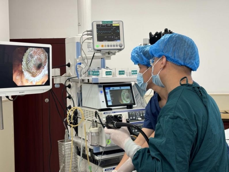 “吃不下、喝不了,连救命药都吞不下去!”2025年6月,重庆医科大学附属第二医院消化内镜中心接诊了一位特殊的患者——67岁的李阿姨,这位胃癌术后患者因吻合口严重狭窄导致胃出口完全堵塞,连水都喝不下去,更别说服用抗癌药物。更危急的是,她的肺部积满胸水,无法进行常规麻醉,生命危在旦夕。面对这个“不可能完成的任务”,消化内镜中心团队迎难而上,成功实施重庆市首例无麻醉下胃癌术后合并胸腹水困难的超声胃镜下胃