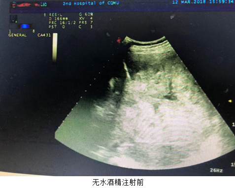 2018年3月13日,肿瘤中心蒋萱主治医师在超声引导下成功行经皮肝癌瘤内注射无水酒精1例。