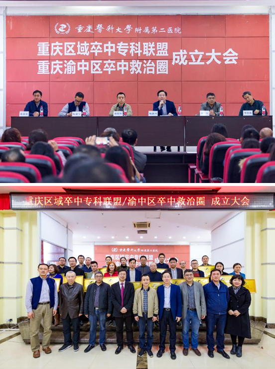 2018年3月9日下午,重庆区域卒中专科联盟暨重庆渝中区卒中救治圈成立大会及授牌仪式在重庆医科大学附属第二医院门诊8楼学术报告厅顺利举行。重庆医科大学附属第二医院梅浙川院长、重庆市卫生和计划生育委员会医政医管处戴骄阳副处长、重庆市渝中区卫生和计划生育委员会周琦副主任、医务处张荣贵副处长出席大会。