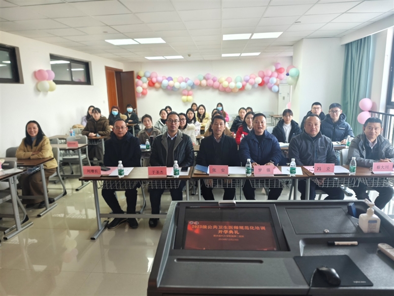 2024年12月23日,我院迎来2023级公共卫生医师规范化培训开学典礼,一群怀揣梦想的公卫医师规培学员在此扬帆起航,开启他们专业成长的新篇章。医院副院长张安、研究生管理处处长罗强、医务处副处长于圣杰、协同基地重庆医高专附属医院科教科副科长冯云、学员导师蔡大川教授、汪丽教授、刘增长教授、公共卫生科科长王玉廷、轮转科室教学秘书、2023级公卫医师规培学员及公共相关工作人员等30余人参加了开学典礼。