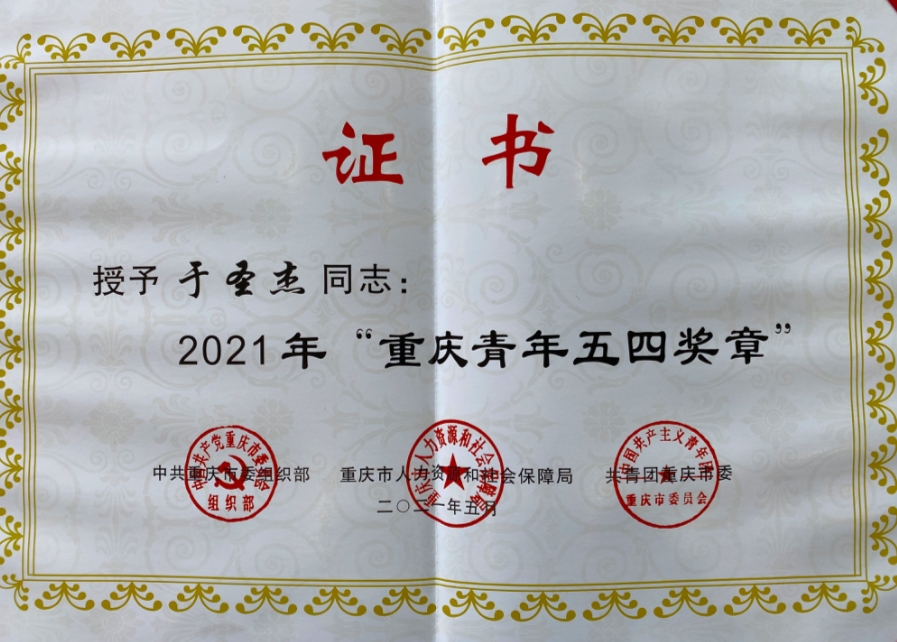 2021年4月29日,由中共重庆市委组织部、重庆市人力资源和社会保障局、共青团重庆市委员会联合授予10名同志2021年“重庆青年五四奖章”。前...