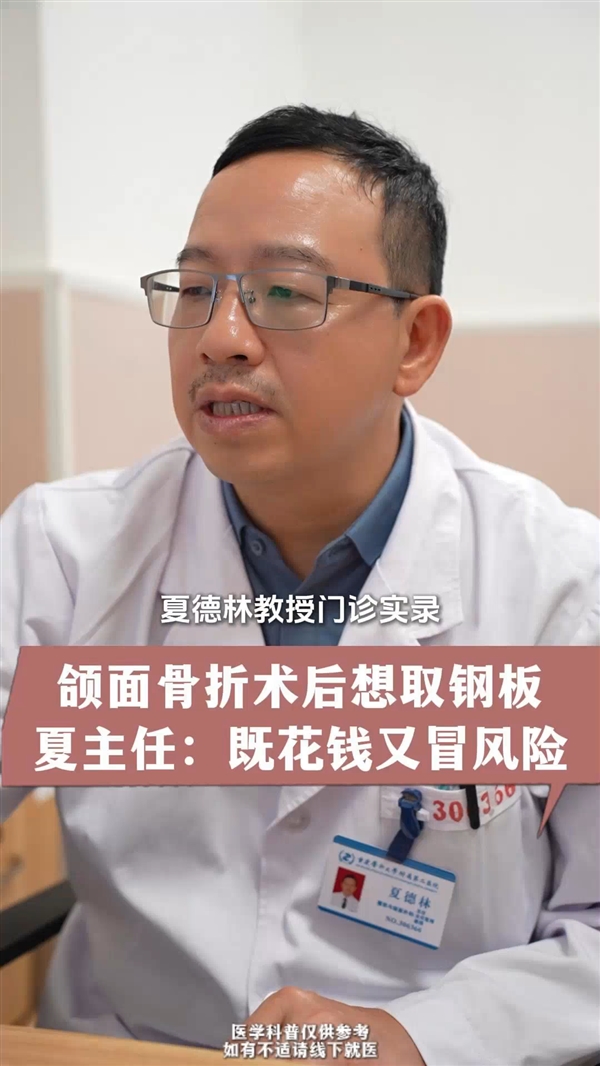 颌面骨折术后想取钢板 夏主任:既花钱又冒风险
