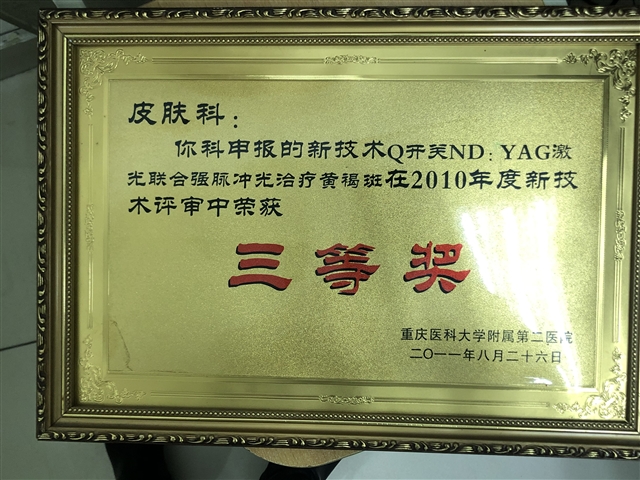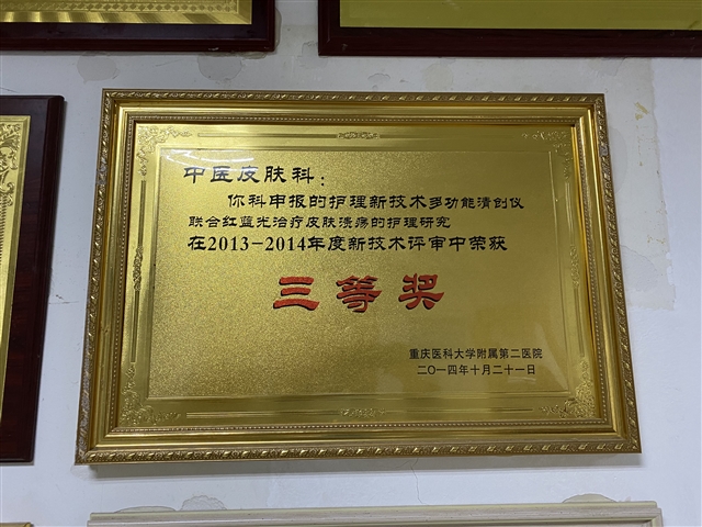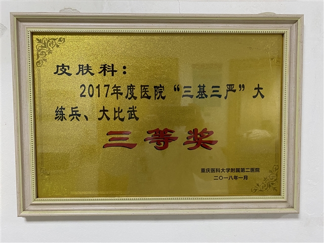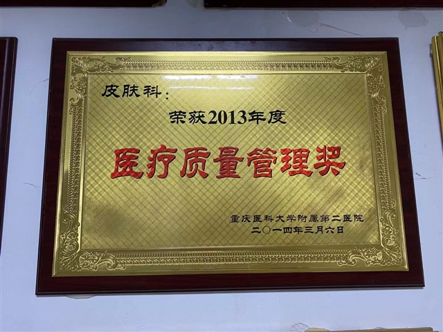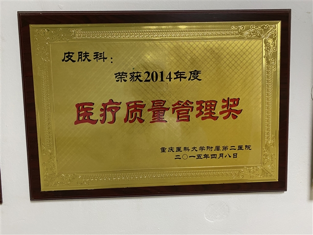 皮肤科始建于上世纪60年代,经过60余年的建设和发展,现已成为集医疗、教学、科研为一体的西南地区知名皮肤专科。科室技术力量雄厚、医疗设备齐全、综合实力强。目前为重庆市临床重点专科、皮肤病与性病学硕士学位授予点、皮肤病与性病国家住院医师规范化培训基地、中国西部毛发医学专病联盟理事长单位、国家中西医结合医疗中心毛发医联体区域质控单位,重庆市中西医结合学会皮肤美容专业委员会黄褐斑单病种联盟副主委单位、重庆市中西医结合学会皮肤美容专业委员会脱发单病种联盟副主委单位、重庆市中西医结合学会皮肤美容专业委员会瘢痕单病种联盟副主委单位、中南大学湘雅医院全国玫瑰痤疮与面部过敏专病联盟单位。