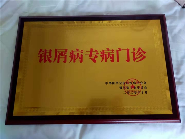 2020年挂牌中华医学会银屑病组专病门诊,并参加银屑病生物制剂上市后全国研究;