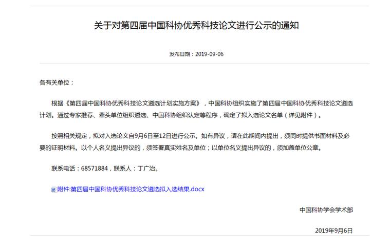中国科协优秀科技论文是遴选推介发表在我国正式出版的科技期刊上,且在国际学术界有影响、在科技前沿有突破和建树、对原始创新有引领作用的优秀论文。本次论文是从2015年1月1日起至今发表在正式出版的中国科技期刊上的优秀论文中进行遴选,共10个学科集群(数理化与交叉学科集群、地球科学集群、预防与中医药集群、临床医学集群、农林集群、制造业与材料集群、电工电子与信息技术集群、交通与基建集群、能源化工与环境集群、生命科学与基础医学集群),81个学科分类,共遴选99篇优秀论文,临床医学仅入选10篇。