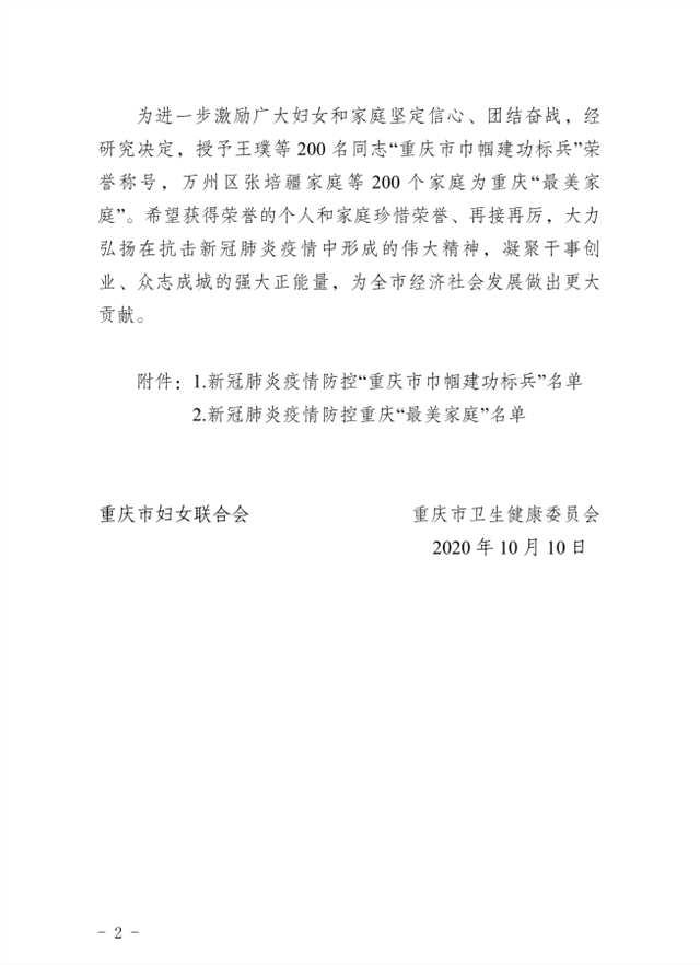 王燕-新冠肺炎疫情防控“重庆市巾帼建功标兵”