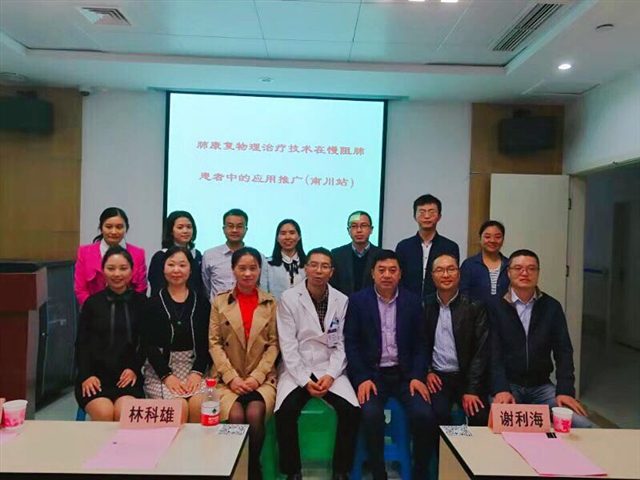 为推进慢阻肺的治疗与康复管理,2018年10月12日,重庆医科大学附属第二医院呼吸与危重症医学科蒋幼凡教授、陈贵华护士长、冯望呼吸治疗师一行前往南川区人民医院,进行“肺康复物理治疗技术在慢阻肺患者中的应用”的技术推广。参与此次推广项目的有南川区人民医院、重庆医科大学附属第三医院、重庆市第九人民医院、两江新区第一人民医院等南川区周边9家医疗机构的临床医生及相关护理人员。