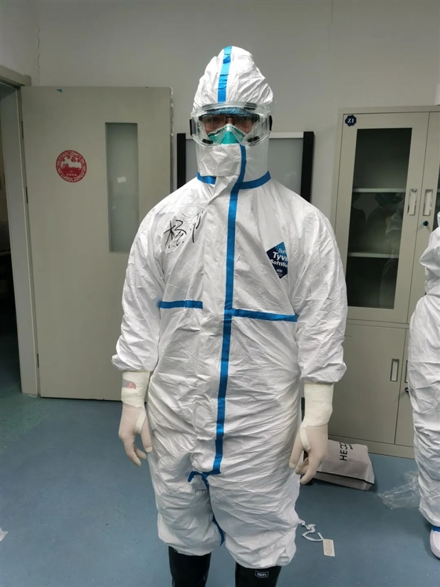 “TONY杨营业了,哪位有需要呀”第三批援湖北医疗队的微信群里跳出问话。“302房间……316房间……来咯”才到达武汉,大家就忙着准备进入重症病区,剪头发成了必不可少的功课。杨帅把给孩子的剃头器带了出来,主动询问谁需要帮助,他就去为他们理发。到后来,他成为了队内的TONY老师。我们在收治病人前的合影中看到的那一排最帅小平头都是他的作品。进驻病区工作后,由于病人多、病情重,条件有限,一个班上下来比平时辛苦很多。科杨帅总是抢着进红区看病人查房,碰到暴露风险高的操作他也争着做,毫不畏惧与病毒面对面零距离。医疗队里有好几个女医生,也有补充的新进医生,他总是挡在他们前面做事,默默关怀照顾。