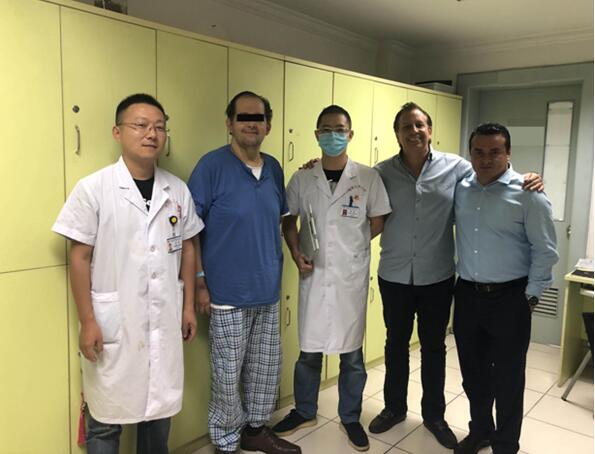 近期,海扶治疗科接诊了一名从墨西哥不远万里慕名而来的胰腺癌患者,该患者是墨西哥当地医院的一名骨科医生。今年5月,患者因全身皮肤巩膜黄染就诊当地医院,完善全身检查后提示胰头占位,超声内镜病理活检提示:腺癌。遂在当地医院行胆道支架植入术解除了胆道梗阻情况,因患者胰腺病灶侵犯周围多条血管,失去手术切除的机会,患者一般情况好转后在当地接受了3周期化疗。经多方咨询,决定漂洋过海来我院进行HIFU治疗。经过严格的术前准备,8月28日按计划在全身麻醉下针对胰腺肿瘤病灶成功地进行高强度聚焦超声消融术,经周崑副教授及医护团队的缜密治疗及精心护理,术后复查增强CT提示肿瘤病灶消融满意,于9月2日康复出院,为这次跨国治疗划上圆满的句号。