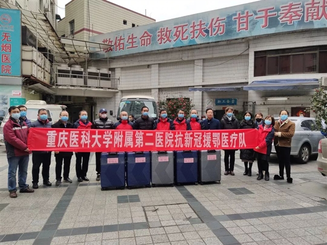 2020年2月17日,重庆医科大学附属第二医院第二批抗击新型冠状病毒感染肺炎援鄂医疗队出征仪式在院举行,我科于今日上午也为由“副主任李长毅副教授、邓旺副教授”组成的援鄂医疗队举行了出征欢送仪式。2月2日,由呼吸与危重症医学科副主任杜先智教授、副护士长罗晓庆主管护师带队的6位医护人员组成的第一批抗击新型冠状病毒感染肺炎援鄂医疗队支援武汉大学人民医院;其余三位主任镇守重庆:呼吸与危重症医学科主任、重庆新冠状病毒肺炎重庆市市级专家组组长王导新教授坐镇在市公卫中心;呼吸与危重症医学科两位副主任----重庆市新型冠状病毒肺炎救治专家组组员童瑾副教授、重庆市新型冠状病毒肺炎医疗救治专家组黔江⽚区副组长江德鹏副教授,分别支援万州三峡中心医院及黔江片区医院;至此,呼吸与危重症医学科五位主任全部坚守在抗击新冠的一线战域。