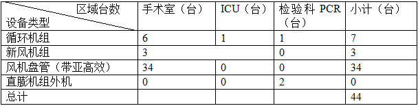 (三)各区域净化具体情况和设备数量如下: