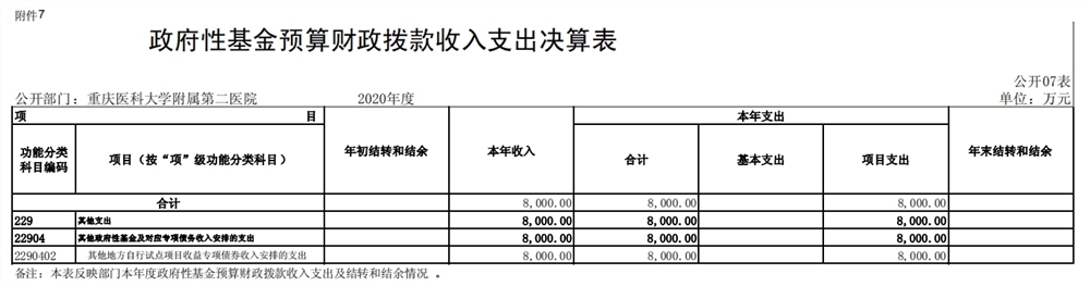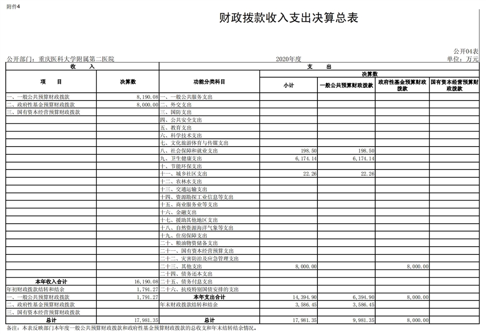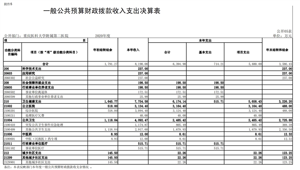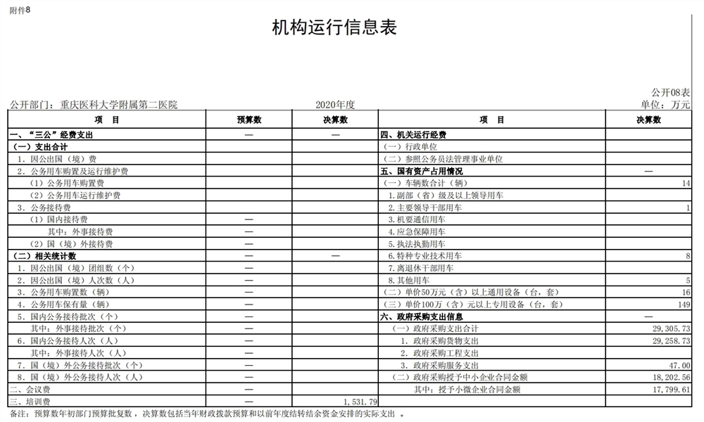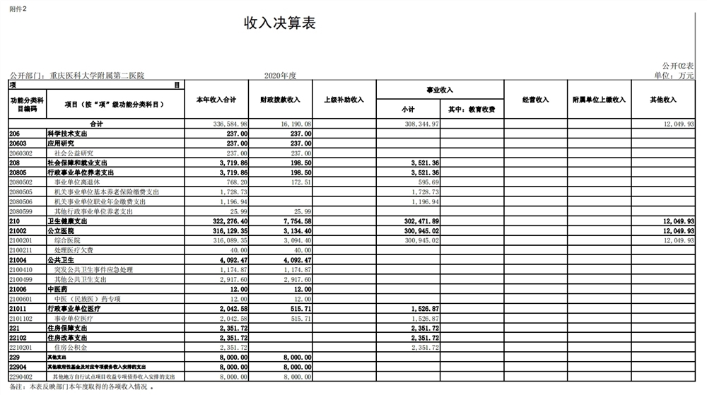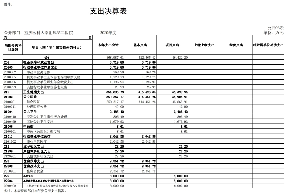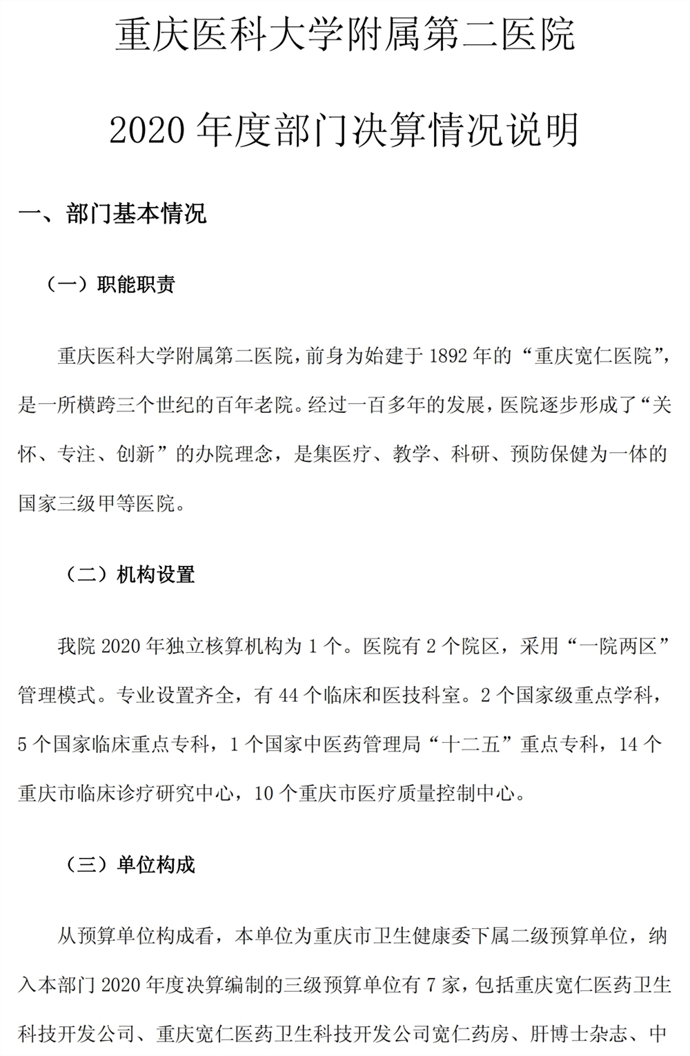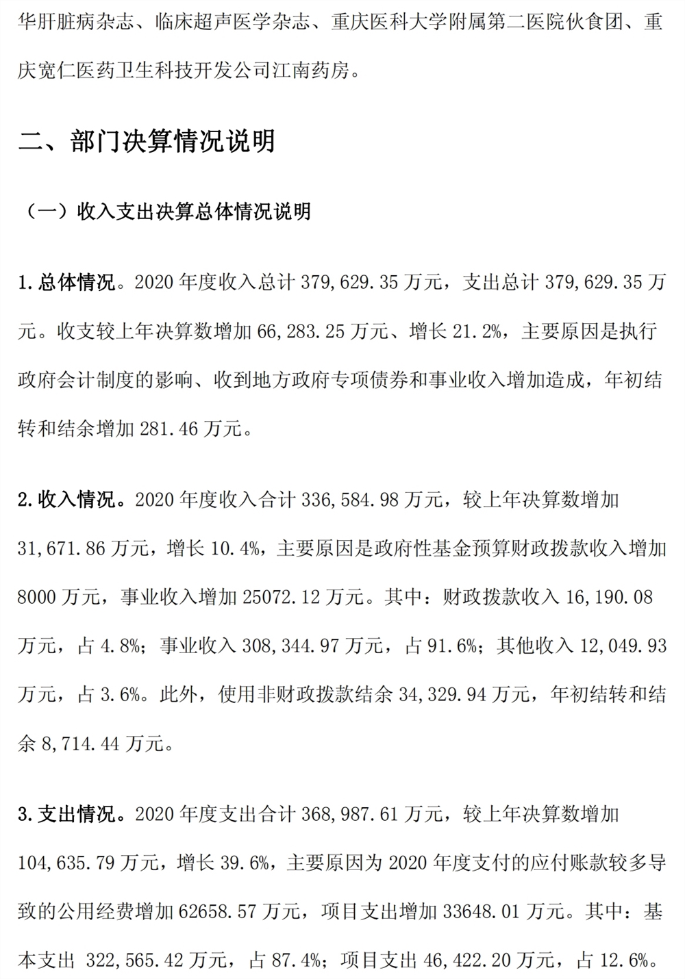 重庆医科大学附属第二医院2020年度部门决算情况说明