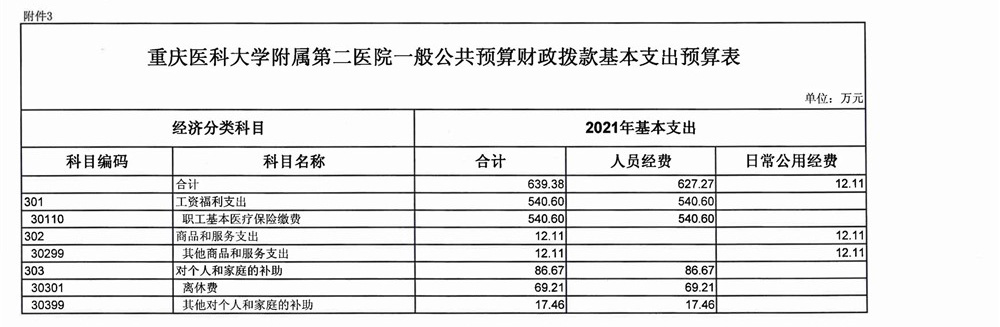 重庆医科大学附属第二医院2021年单位预算情况说明