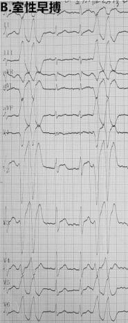 患者是一名来自重庆某区县的40岁男性,自3年前起,每年出现晕厥2-3次,未引起重视。1年前,患者于外地打工期间再次晕厥,于当地医院行心电图检查发现V1-V3导联ST段异常抬高(图1A),这才揭开了患者晕厥原因的面纱。对患者而言,植入埋藏式心脏复律除颤器(ICD)能有效解决预防心源性猝死,但患者因费用、影响体力劳动等原因一直拒绝。在入我院前2天,患者反复晕厥7次,由120紧急送入并于CCU再发意识丧失,心电监护记录到多形性室速(图1D),经抢救治疗后暂时脱离危险。