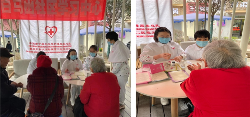 雪消门外千山绿,花发江边二月晴,为进一步弘扬南丁格尔“人道,博爱,奉献”的精神,践行“全人,全程,全心”的三全护理理念,关爱女性健康。2022年2月24日重庆医科大学附属第二医院妇科的南丁格尔志愿者们走进白马凼社区街心花园开展志愿服务活动。