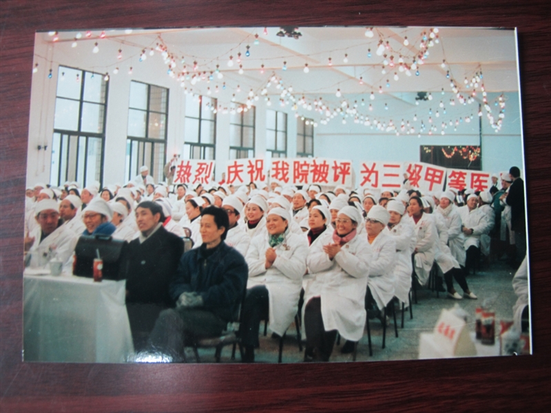 (1994年,医院成为首批合格的三级甲等医院,全院职工欢呼庆贺。)