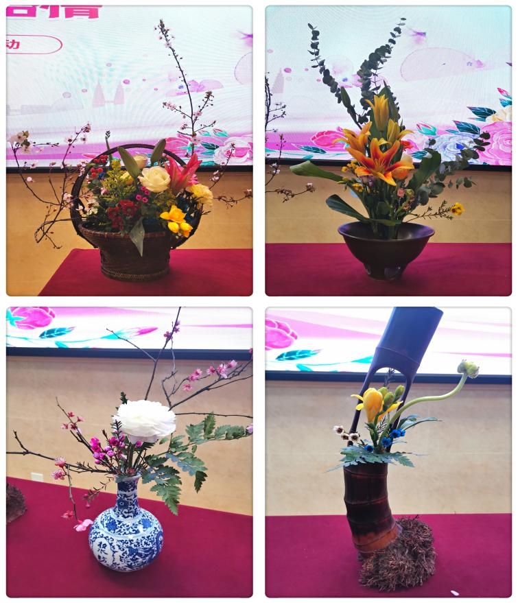 接下来,杨力书记向大家细致地讲解了插花的艺术造型要素和技巧手法,并在现场做了生动的演示。活动现场花香四溢,充满着春天的气息,大家兴趣盎然,边看边学,享受着亲自创作的乐趣和插花艺术带来的快乐,现场持续升温,热情爆棚!整个活动最精彩、最令人期待的环节是由女同胞们DIY一篮属于自己的花束,一盆盆错落有致、色彩鲜艳、造型各异的插花作品展现在大家面前,寄托着大家对美的理解和对幸福的感悟。