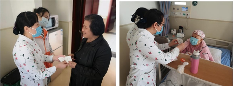清晨伊始,志愿者们进入病房,热情给女性住院患者和家属打招呼、送贺卡,祝她们女神节快乐,并祝患者早日康复。患者和家属收到节日贺卡非常感动,感谢大家对他们的关心和关爱,也向医护人员表达了节日祝福。