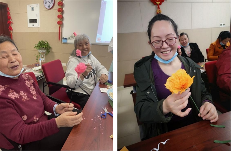 患者和家属手工制作康乃馨