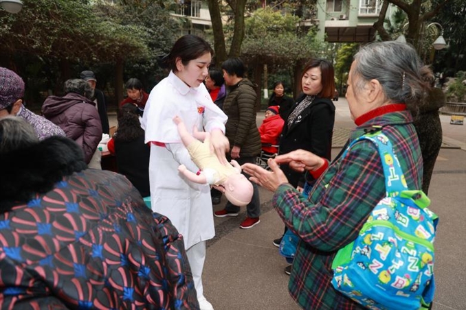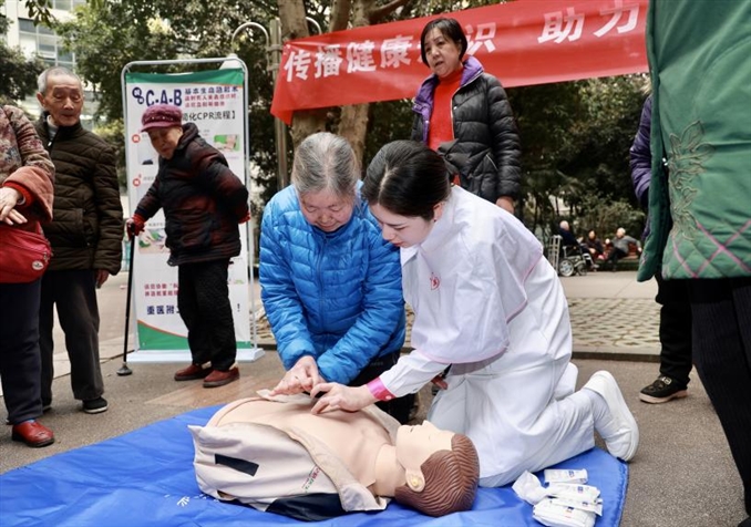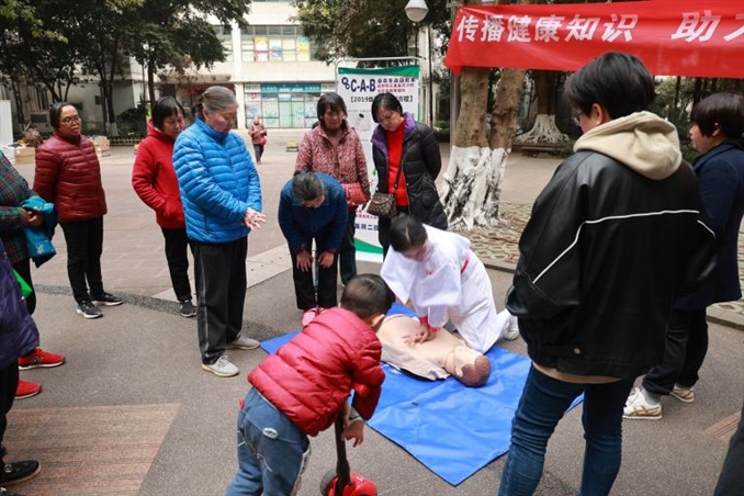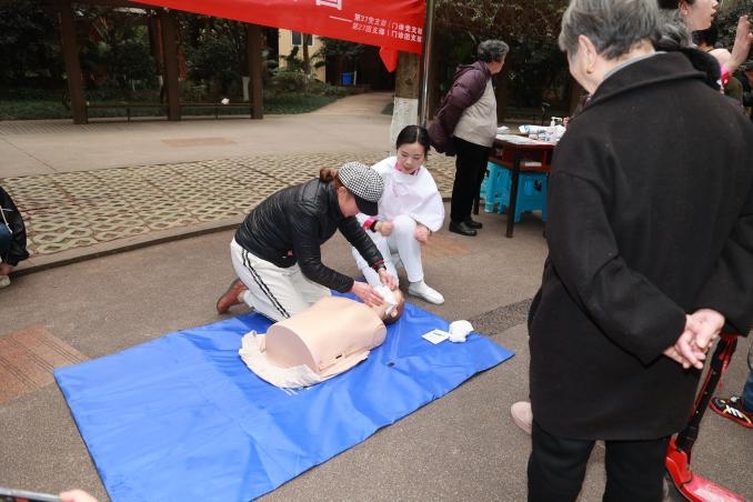 义诊活动设置了心脏骤停后的心肺复苏急救技术现场教学、异物卡喉后的海姆尼克急救技术现场教学、测血糖、测血压、健康咨询共5项内容,同时,也通过在社区向居民发放健康处方及医院宣传册,向他们讲解疫情防控知识、居家保健注意事项及就医指南。在义诊活动进行的两个半小时里共进行测血压、测血糖及健康咨询百余人次,现场培训心肺复苏及海姆尼克术50余人次,发放宣传资料200余份。