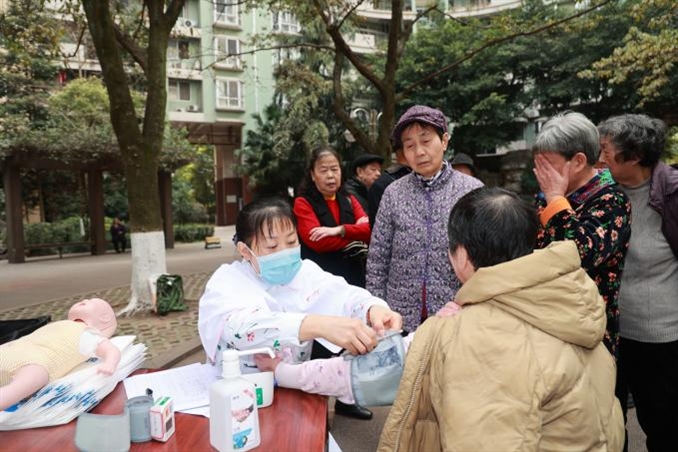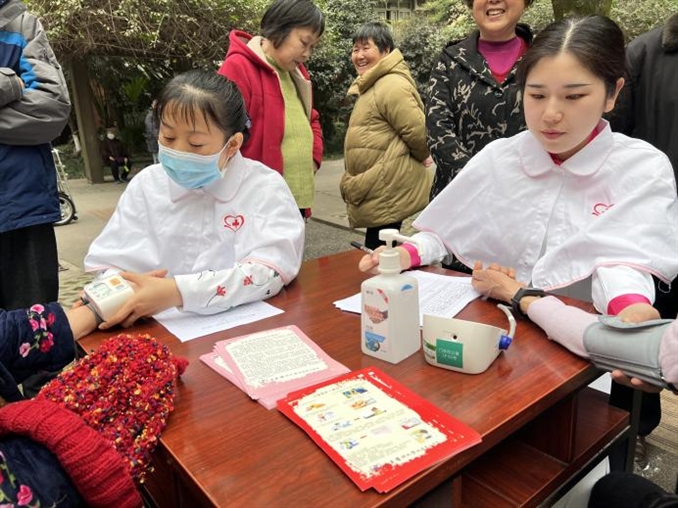 阳春三月冬日的寒冷尚未完全褪去,气温虽低却依然挡不住一群热情且有责任感的白衣天使志愿服务的步伐。3月4日下午护理志愿者们在门诊部护士长李玉兰的带领下来到重庆工商大学教师住宅学府苑小区进行健康宣教与义诊活动。