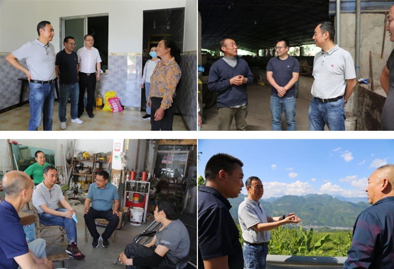 离开卫生院之后,王大刚一行又马不停蹄地前往大进镇红旗村、年华村、紫金村,走访乡村振兴工作。一行人顶着炎炎烈日,沿着崎岖山路穿村而行,一边查看村容村貌,一边深入了解村里情况,走访慰问村民代表和困难群众,了解村里特色产业发展。一行人在紫金村村民代表家中,详细了解其生活情况并送上慰问品;随后到村里养殖专业户家中,了解肉牛养殖产业情况,并强调要加强消费帮扶的力度、拓宽销售渠道。在年华村,王大刚慰问了一名患尿毒症10余年的村民,在驻村干部的长期开导和帮助下,这位村民精神状况和生活都有了明显好转。最后,一行人深入红旗村的田间地头,实地参观了茶叶种植和晚熟李果树产业的种植园。返回开州区后,一行人同开州区中医院进行了短暂的交流。