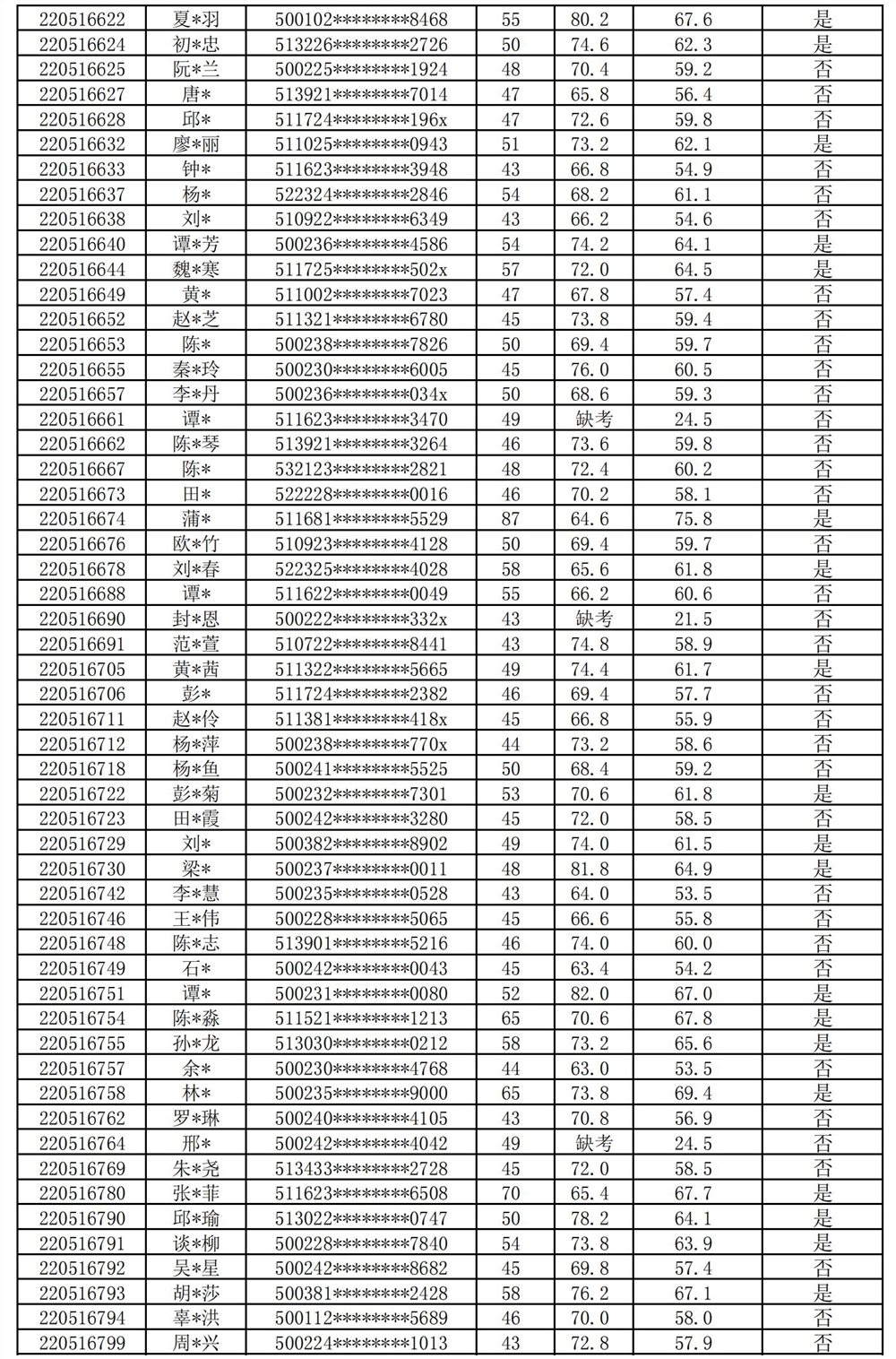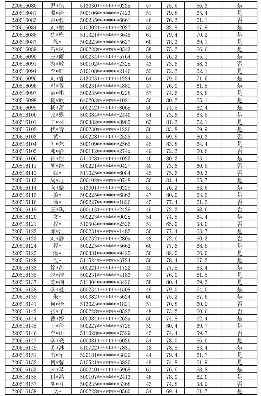 重庆医科大学附属第二医院2022年护士规范化培训招录体检人员名单