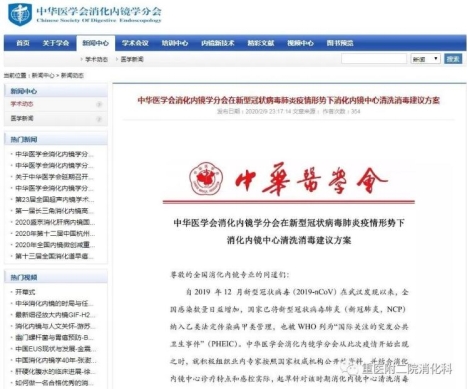 《中华医学会消化内镜学分会在新冠肺炎疫情形势下消化内镜中心清洗消毒建议方案》。院方供图
