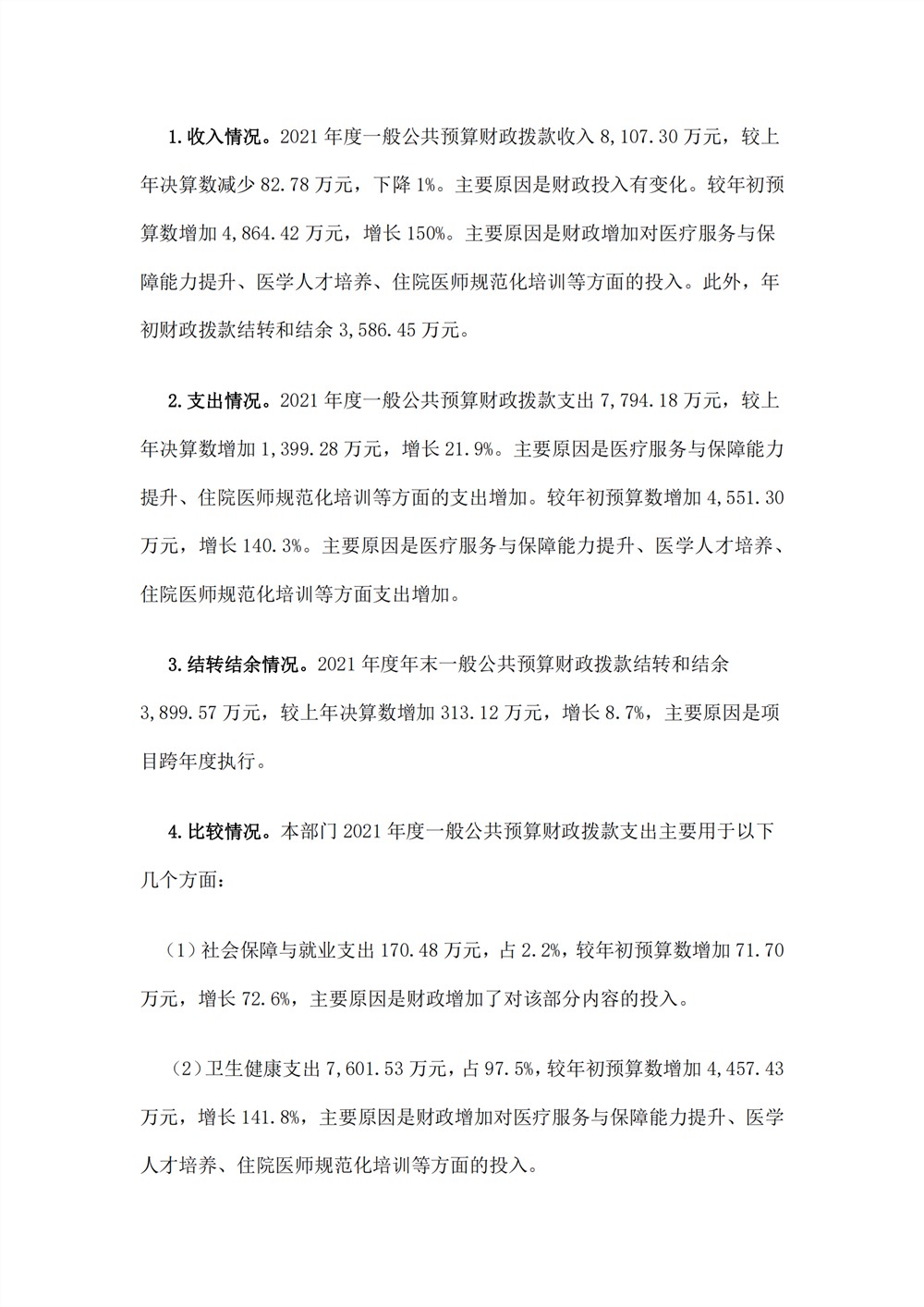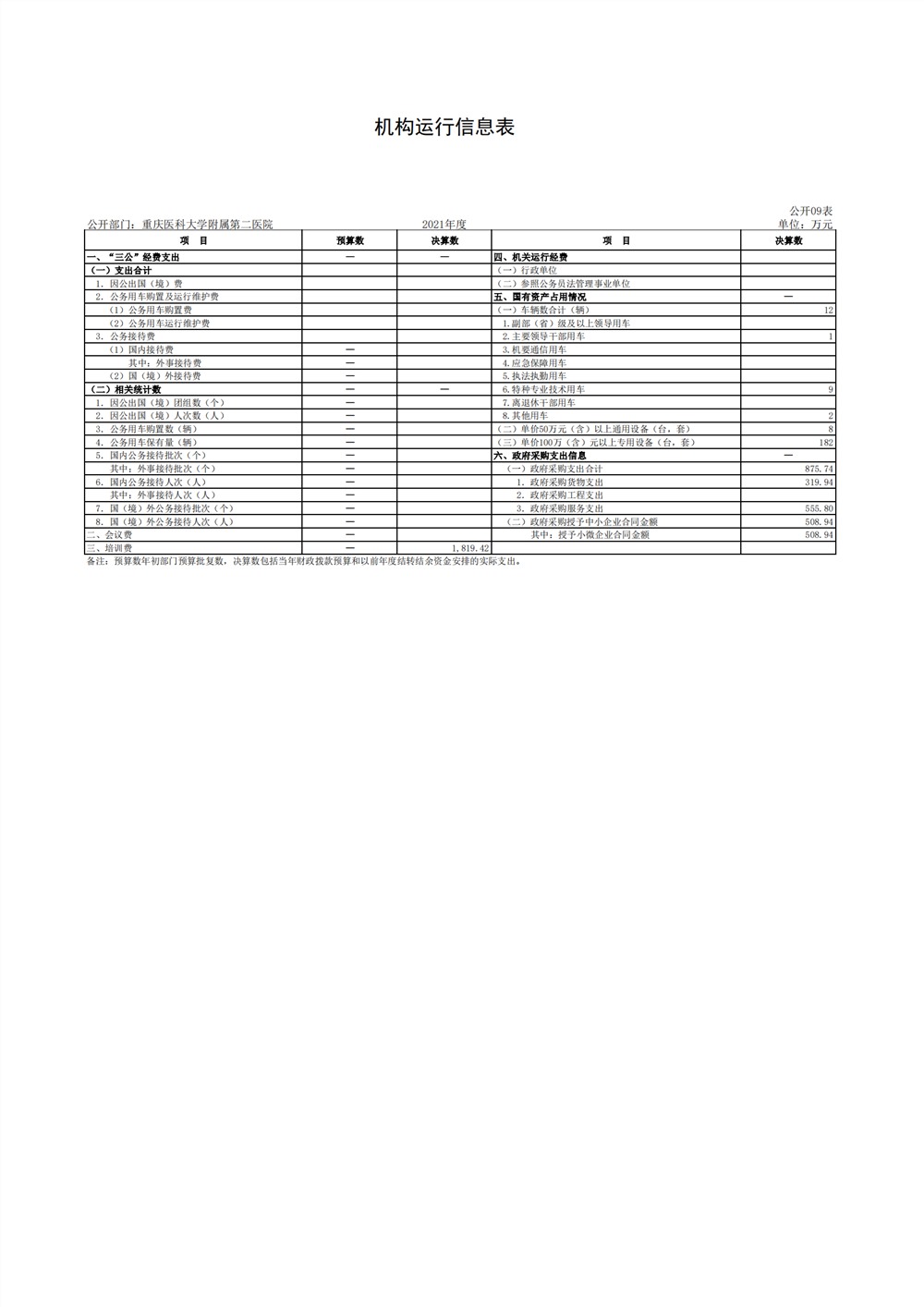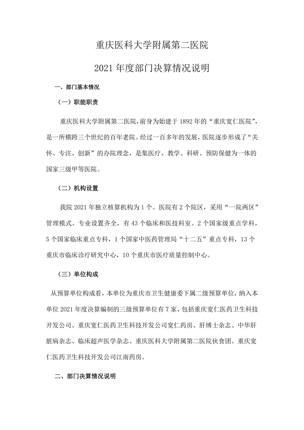重庆医科大学附属第二医院2021年度部门决算情况说明