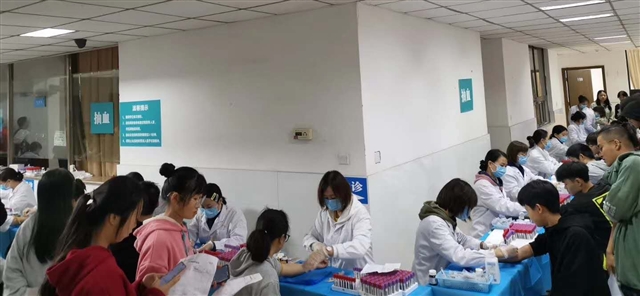 医护人员早上6点50准时到岗,参检新生们在工作人员的带领下,以系、班为单位有序地进入体检场地,分批、分科目进行体检。由于此次体检时间紧、任务重,为保障效率,10月10日在抽血点又另增派了9名护士,护士长许国琼也亲自上阵参与采血任务,当天上午共采集了4000份血标本。所有医护人员严格按照流程要求、耐心细致、逐项检查,导检、各小组成员密切配合,组织疏导学生,维持现场秩序。面对体检现场任务重、人员多而集中的场面,全体工作人员以饱满的工作热情,从容面对、通力协作、相互补位,各项工作有条不紊,快速推进。