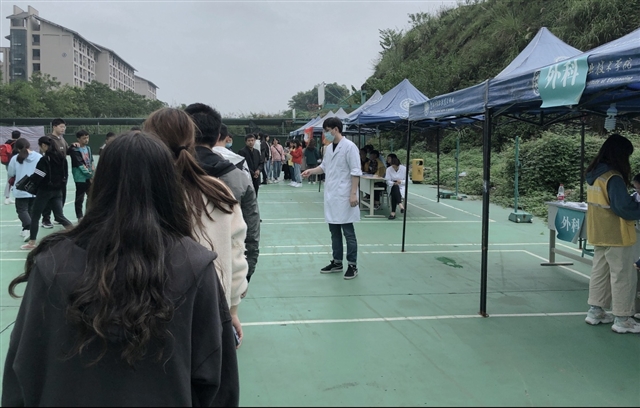 接到体检任务后,我院领导高度重视,体检中心梅英主任,许国琼护士长亲自率队,现场调研、摸排新生情况,讨论制定出切合学校需求、符合学生体质的体检项目。体检场地分设在学校小操场和校医院两处,同时安排了两辆体检车进行胸部照片检查。为保障体检有序高效进行,避免学生两个体检点来回奔波,设置合理的单循环检查顺序,现场还安排导检、协调、急救、宣教、安保人员。各岗位分工准确,职责明晰。
