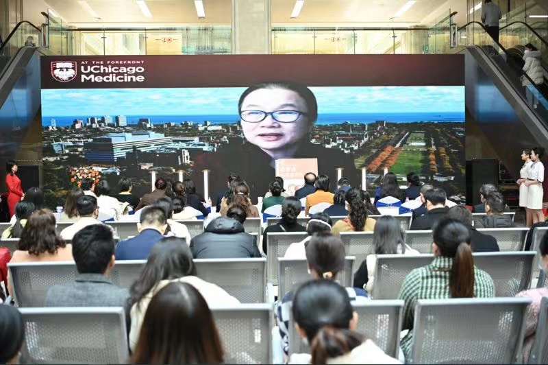▲现场播放石应珊医生祝贺视频/图源 重医附二院
