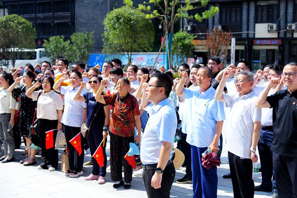 在刘邓大军挺近大西南纪念碑前,全体党员被浓浓的革命氛围所感染。面对鲜红的党旗,重温入党誓词,表达为党的事业奋斗毕生的决心,再一次接受了党性的洗礼。
