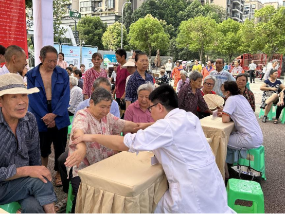 7月7日正值小暑节气,面对高温湿热天气,大家如何科学防病、健康养生?当天,重医附二院心血管内科、骨科-关节外科、感染与肝病中心、肝胆外科、肾内科、血管疝腹壁外科、老年病科、康复医学科、眼科、皮肤科10个科室组成的大型义诊团顶着高温天气来到现场,通过专家免费义诊咨询,免费测量血压、血糖,赠送环保折叠袋等小礼品,限量发放门诊挂号费用优惠卡等服务,将三甲公立医院的优质医疗资源送到了基层群众身边。