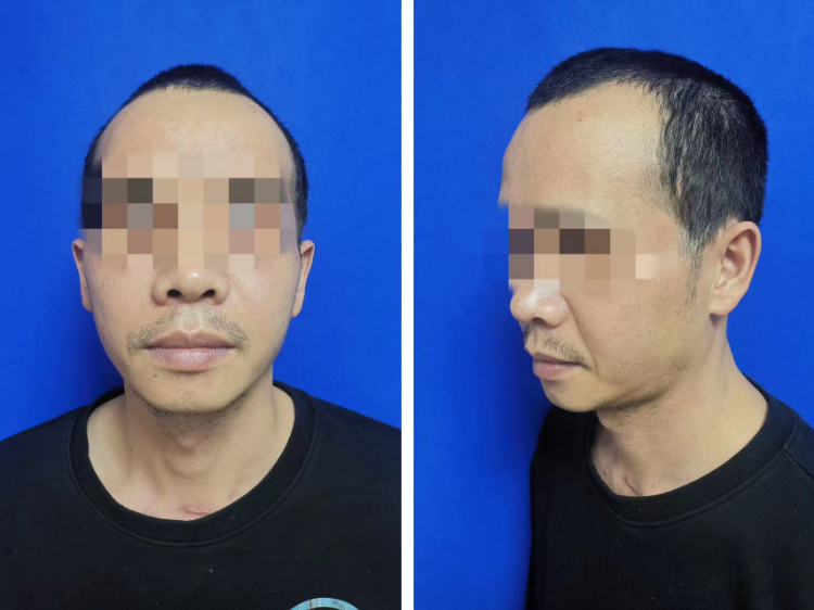考虑患者病情紧急且复杂,该科医护第一时间对患者进行了重症监护、呼吸机辅助通气、止血等系列对症处理,同时组织院内多科会诊,分析、讨论病情及治疗方案。根据患者的实际情况,该院眼科团队很快为其进行了“右眼眼球内容物剜除术、右眼巩膜切开探查术、右眼结膜囊成形术、右眼巩膜裂伤缝合术、左眼结膜缝合术、左眼眼睑裂伤缝合术”。手术很顺利,但对于面部毁损严重的何先生来说,还有更大的难题需要克服。经过10天的住院治疗,何先生双侧额、颞及颌面部多发软组织肿胀情况缓解,蛛网膜下腔出血情况稳定,生命体征趋于平稳后,被转入该院整形美容与颌面外科。