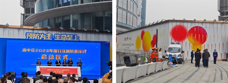 2023年11月9日,保卫科、急救部参加了渝中区2023年度“119”消防宣传月启动仪式,向区领导展示了我院消防应急救援能力和医疗应急救援措施,得到了一致好评,同时,也给人民群众普及了急救常识。