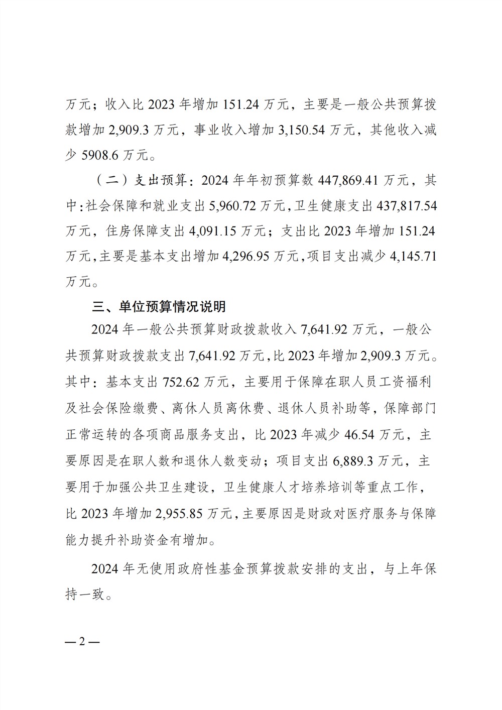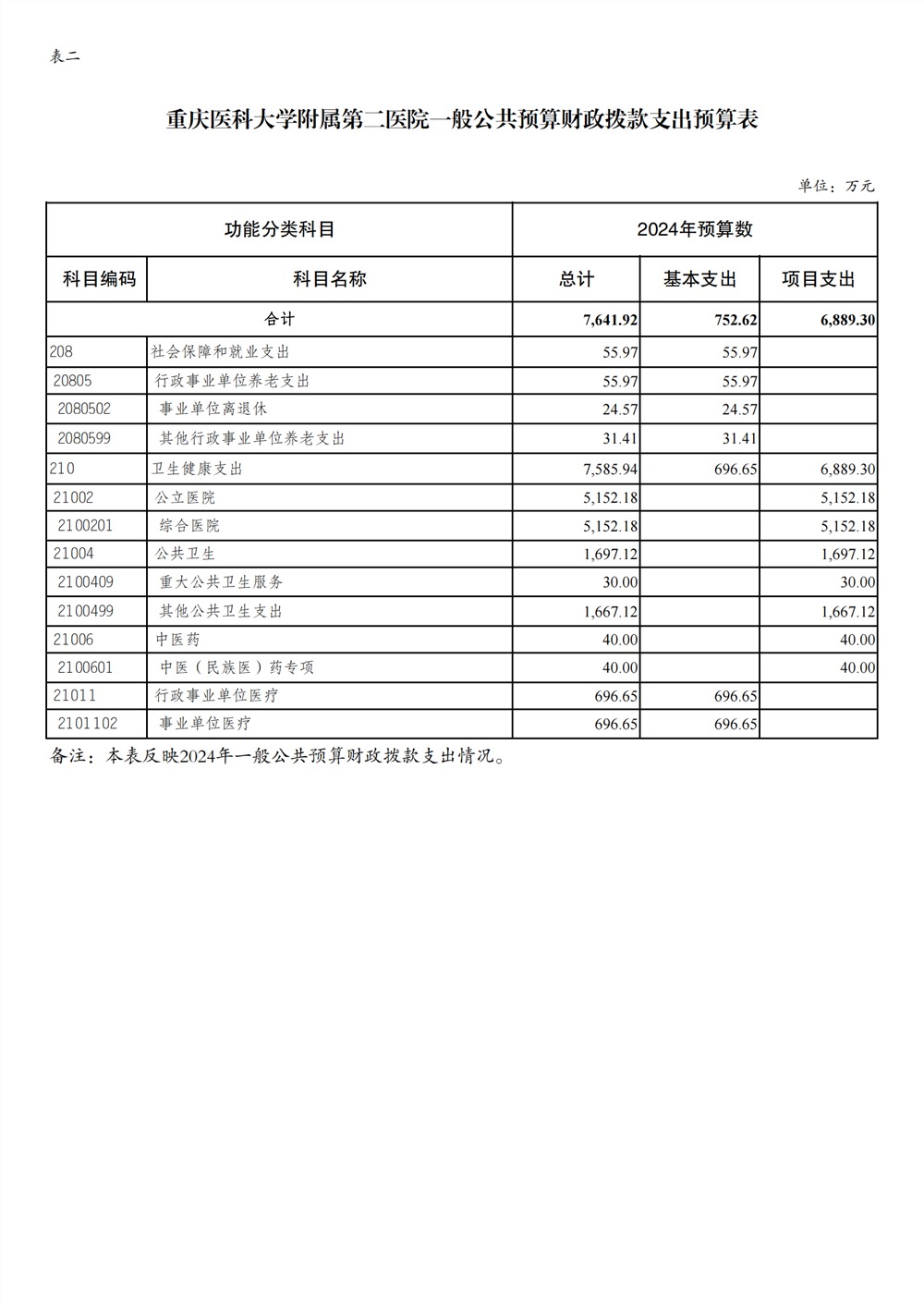 重庆医科大学附属第二医院2024年单位预算情况说明